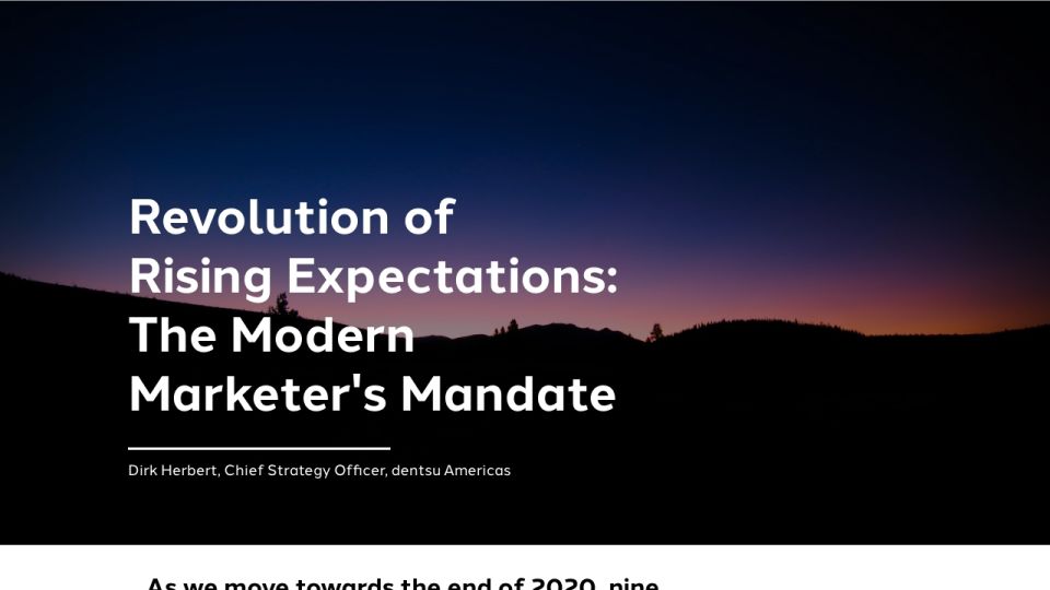 Yes, we all will have to work harder, faster and smarter to live up to higher expectations. But what marketer worth their salt would pass up the opportunity to be champions for meaningful progress? At dentsu, we relish this opportunity.